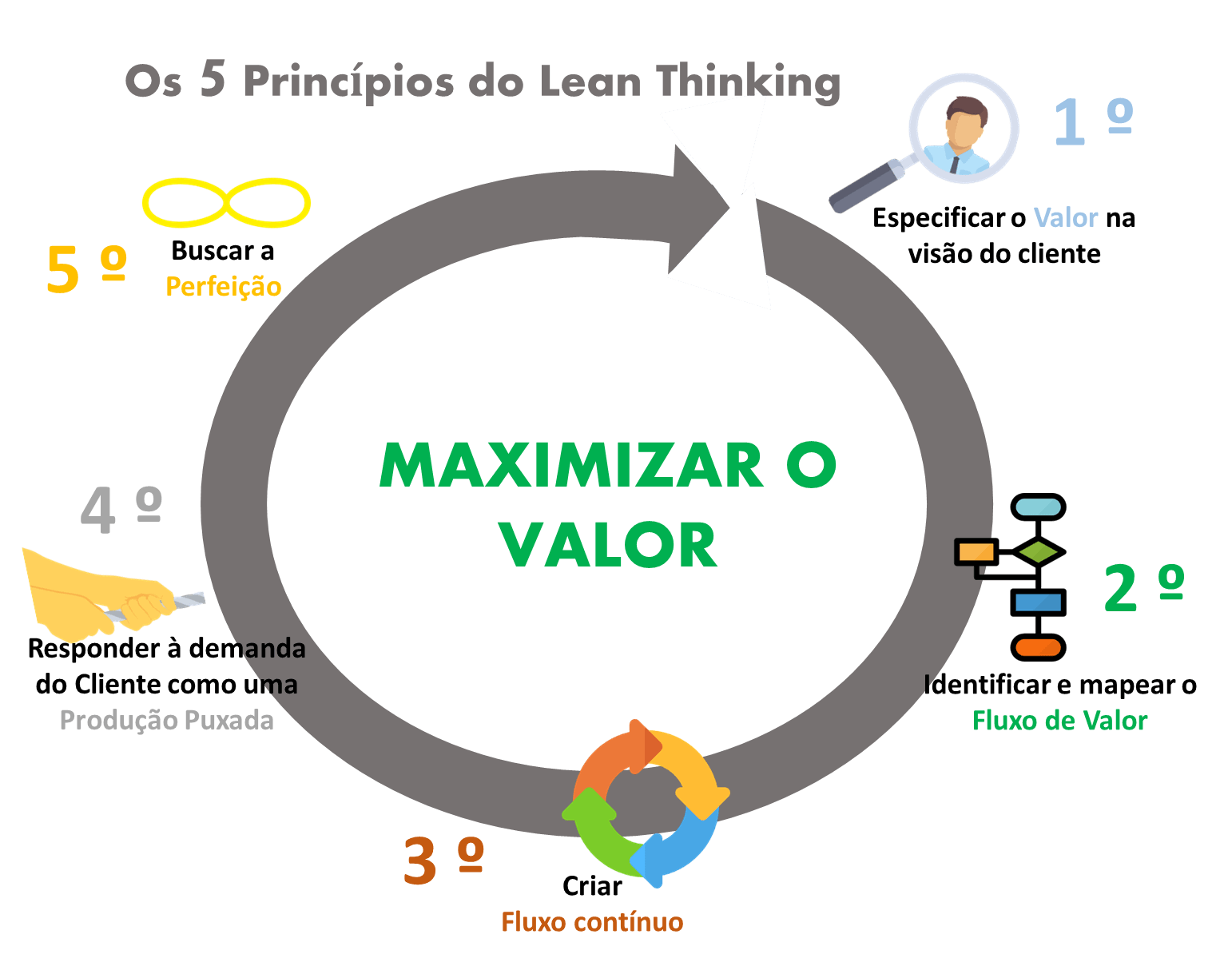 Valor: Este é o principal princípio e talvez o que pareça mais simples, mas exige bastante atenção. Para começar a desenvolver algo precisamos primeiro conhecer, entender e deixar bem definido o que o cliente vê como valor em seu produto ou serviço. Se você entrega algo que não é aquilo que o seu cliente está disposto a pagar, temos um desperdício, pois basicamente aquilo que agrega valor ao cliente é aquilo que ele se dispõe a pagar. Isso exige estudos frequentes para entender o que agrega valor ao seu cliente e para que você transforme o seu produto ou serviço para melhor adequá-lo.
